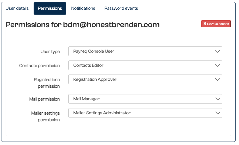 User permissions in Payreq Delivery determine which sections of the Console a user can access—and what they can do in each.